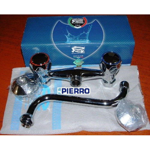 Miscelatore lavello a muro. Serie Giglio, colore cromato. La confezione comprende i tubi di alla..