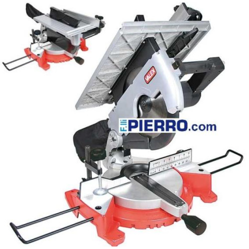 Per tagliare legno e derivati, plastica e materiali espansi - Possibilità di eseguire tagli dritti, inclinati, obliqui e obliqui/inclinati - Testa inclinabile 0-45° - Piano superiore per funzione banco sega in alluminio, dimensioni 360x440mm, altezza di taglio regolabile 0-55mm - Piano inferiore girevole con regolazione dell'angolazione di taglio ±45°, con scatti impostati ogni 5° - Fornita di spingipezzo, squadre di guida rettilinea e goniometrica, morsa bloccapezzo.