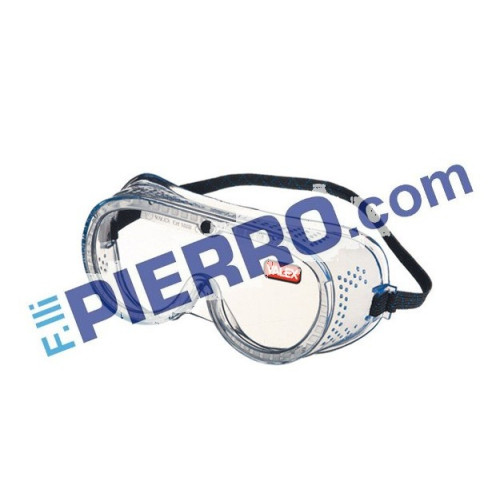 Fori laterali di aerazione - Banda elastica di sostegno regolabile - Sovrapponibile a occhiali con montature ristrette - A norme EN166.