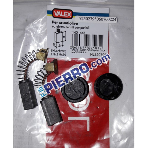 2 tappi e le spazzole del motore 7,9X9,9X20MM codice valex 7250279 - Per scuotitore olive valex Blackfinger
